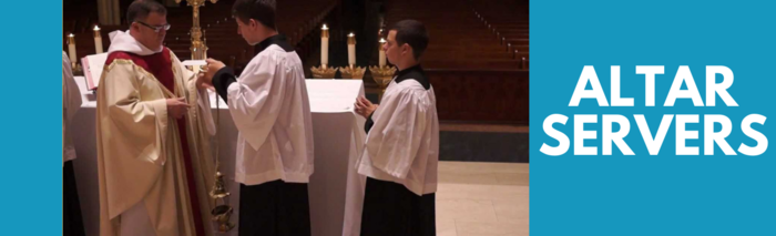 Students, male or female, who are in the fifth grade or older and have made their First Holy Communion, are encouraged to serve at Mass. Training is provided and interested youth may pick up an application form at one of the church entrances or contact the Pastor or Church Office.