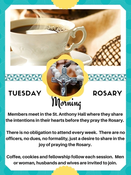 Members meet once a week following the 8:00 a.m. morning Mass. Come join us for great fellowship and refreshments. New members are always welcome.